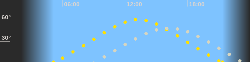 | Höchster Sonnenstand (Kulmination) | 13:15 Uhr (h = 61.7°) |