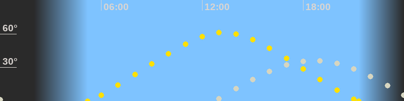 | Höchster Sonnenstand (Kulmination) | 13:15 Uhr (h = 61.4°) |