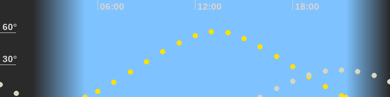 | Höchster Sonnenstand (Kulmination) | 13:16 Uhr (h = 60.9°) |