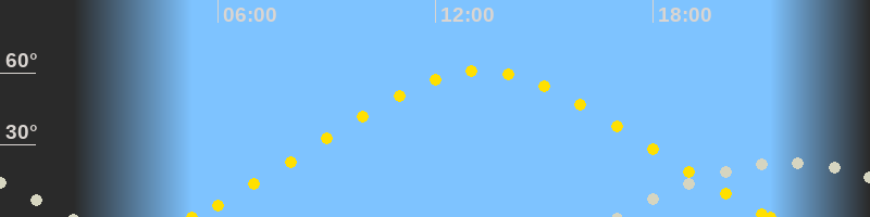 | Höchster Sonnenstand (Kulmination) | 13:16 Uhr (h = 60.8°) |