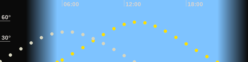 | Höchster Stand (Kulmination) | 06:18 Uhr (h=43.7°) |