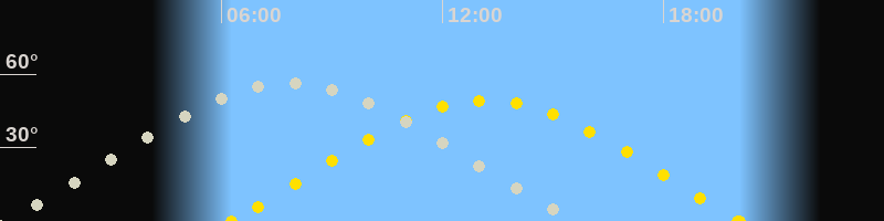 | Höchster Stand (Kulmination) | 07:46 Uhr (h=56.1°) |