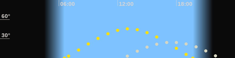 | Sonnenaufgang | 06:34 Uhr im Osten (αAz = 79.6°) |