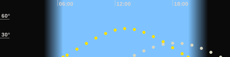 | Höchster Stand (Kulmination) | 18:18 Uhr (h=22.4°) |