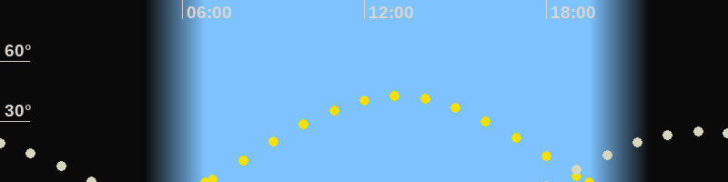 | Sonnenaufgang | 06:45 Uhr im Osten (αAz = 83.8°) |