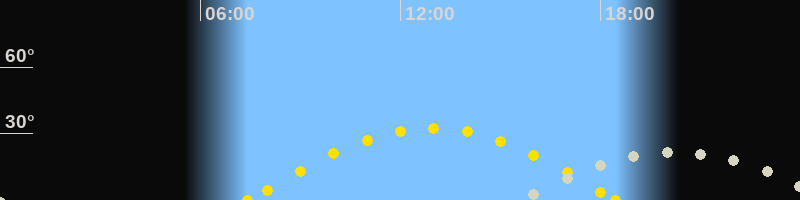 | Mondaufgang | 15:30 Uhr im Südosten (αAz = 118.5°) |
