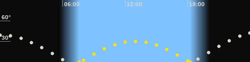 | Höchster Sonnenstand (Kulmination) | 12:55 Uhr (h = 30.3°) |