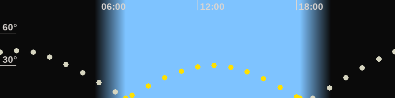 | Höchster Sonnenstand (Kulmination) | 12:55 Uhr (h = 30°) |