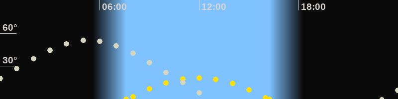 | Höchster Sonnenstand (Kulmination) | 11:56 Uhr (h = 19.3°) |