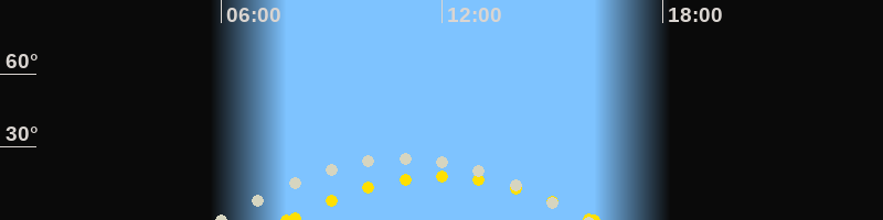 | Höchster Sonnenstand (Kulmination) | 11:58 Uhr (h = 18°) |