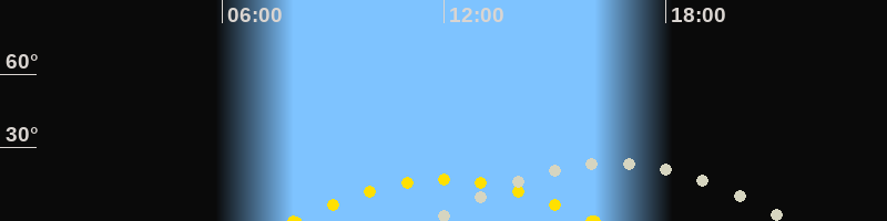 | Höchster Sonnenstand (Kulmination) | 12:00 Uhr (h = 16.9°) |