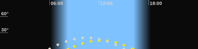 | Höchster Sonnenstand (Kulmination) | 12:11 Uhr (h = 16°) |