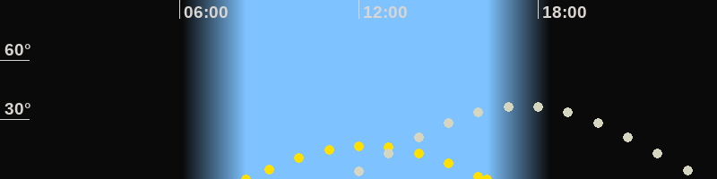 | Höchster Sonnenstand (Kulmination) | 12:15 Uhr (h = 16.7°) |