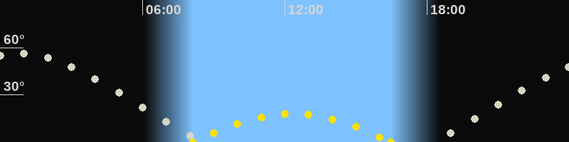 | Höchster Sonnenstand (Kulmination) | 12:19 Uhr (h = 18°) |