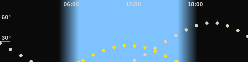 | Höchster Sonnenstand (Kulmination) | 12:24 Uhr (h = 23.9°) |