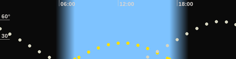 | Höchster Sonnenstand (Kulmination) | 12:24 Uhr (h = 24.6°) |