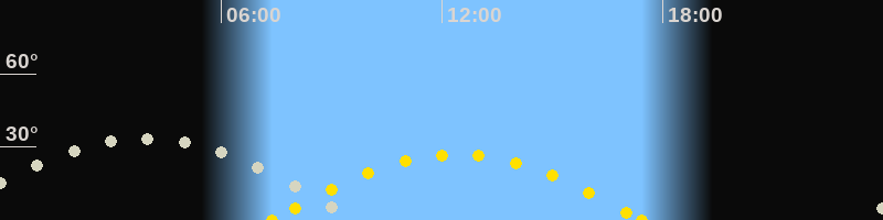 | Höchster Sonnenstand (Kulmination) | 12:24 Uhr (h = 26.9°) |