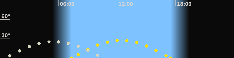 | Sonnenaufgang | 07:19 Uhr im Osten (αAz = 108°) |