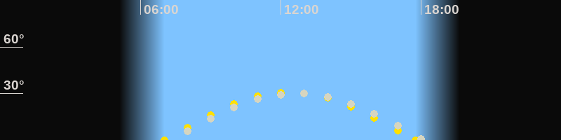 | Höchster Stand (Kulmination) | 12:36 Uhr (h=30°) |