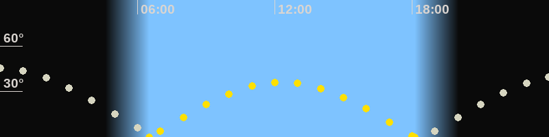Höchster Sonnenstand (Kulmination)12:19 Uhr (h = 36.3°)