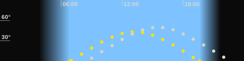 Höchster Sonnenstand (Kulmination)13:14 Uhr (h = 43.4°)