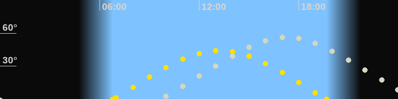 | Höchster Sonnenstand (Kulmination) | 13:13 Uhr (h = 44.2°) |