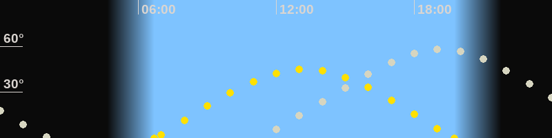 | Höchster Stand (Kulmination) | 19:05 Uhr (h=58.2°) |
