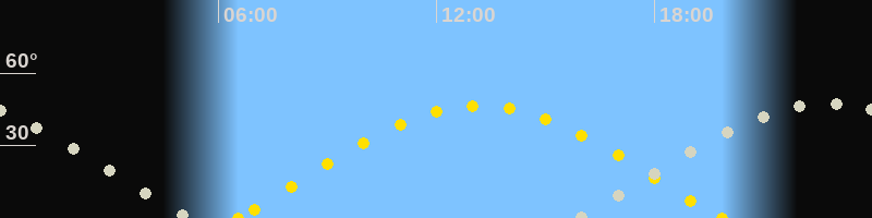 | Höchster Sonnenstand (Kulmination) | 13:12 Uhr (h = 46.4°) |