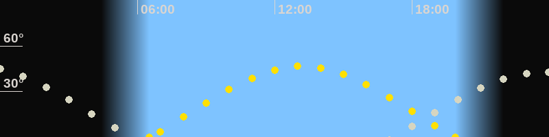 Höchster Sonnenstand (Kulmination)13:11 Uhr (h = 46.8°)