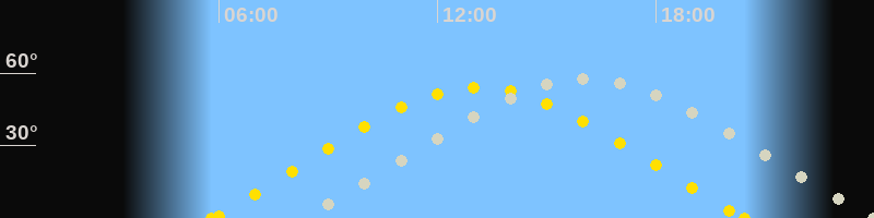 | Höchster Sonnenstand (Kulmination) | 13:07 Uhr (h = 54°) |