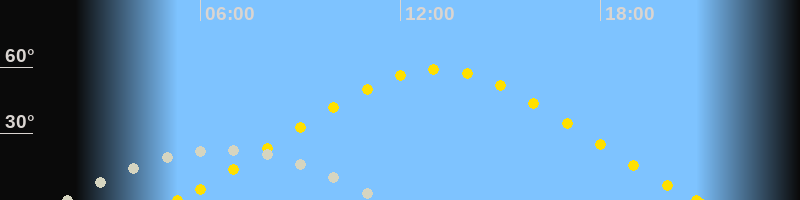 | Höchster Sonnenstand (Kulmination) | 13:06 Uhr (h = 58.8°) |