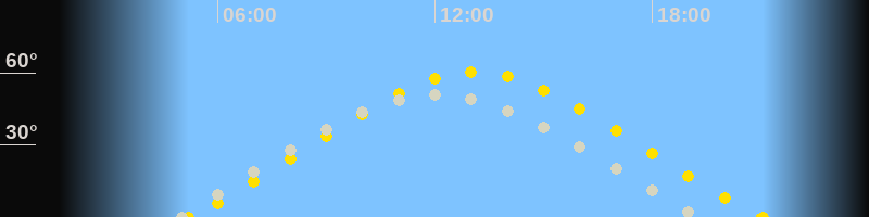 | Höchster Sonnenstand (Kulmination) | 13:07 Uhr (h = 60.2°) |