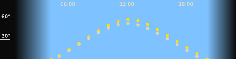 | Höchster Sonnenstand (Kulmination) | 13:07 Uhr (h = 60.4°) |