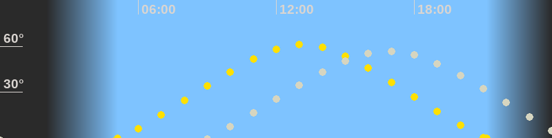 | Höchster Sonnenstand (Kulmination) | 13:07 Uhr (h = 61°) |