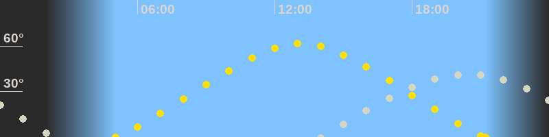 | Höchster Sonnenstand (Kulmination) | 13:08 Uhr (h = 61.6°) |