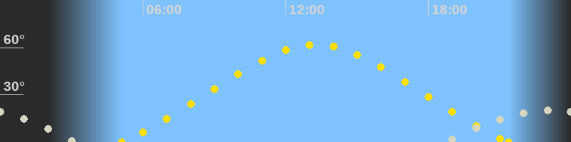 Höchster Sonnenstand (Kulmination)13:15 Uhr (h = 62°)