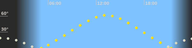 | Höchster Sonnenstand (Kulmination) | 13:15 Uhr (h = 61.8°) |