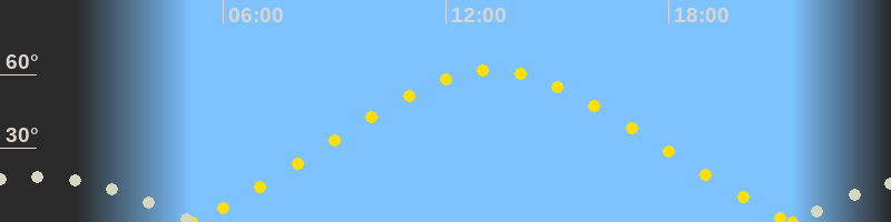 | Höchster Sonnenstand (Kulmination) | 13:15 Uhr (h = 61.6°) |