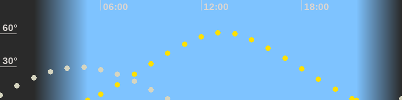 | Höchster Sonnenstand (Kulmination) | 13:16 Uhr (h = 61°) |