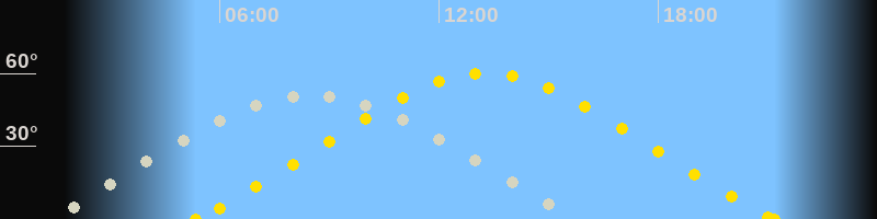 | Höchster Sonnenstand (Kulmination) | 13:16 Uhr (h = 60.1°) |