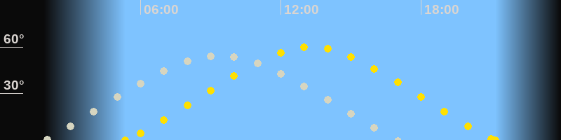 | Höchster Sonnenstand (Kulmination) | 13:16 Uhr (h = 59.9°) |