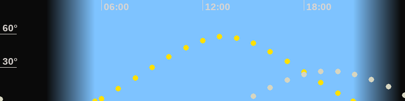 | Höchster Sonnenstand (Kulmination) | 13:16 Uhr (h = 57.6°) |