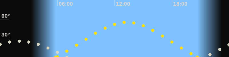 | Höchster Sonnenstand (Kulmination) | 13:15 Uhr (h = 55.1°) |
