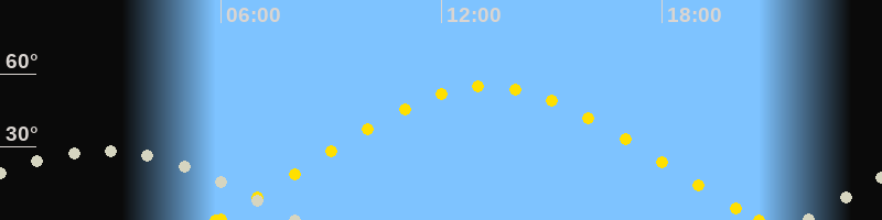 Höchster Sonnenstand (Kulmination)13:15 Uhr (h = 54.9°)