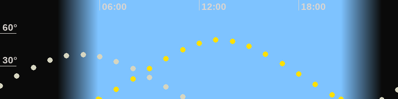 Höchster Sonnenstand (Kulmination)13:15 Uhr (h = 54°)