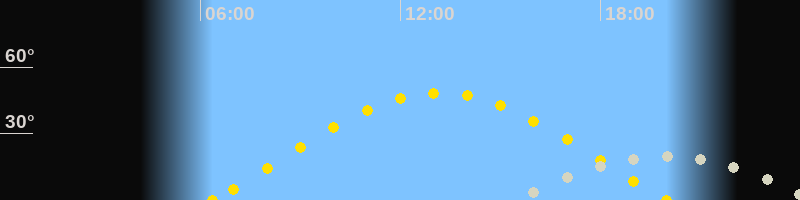 | Sonnenaufgang | 06:21 Uhr im Osten (αAz = 74.7°) |
