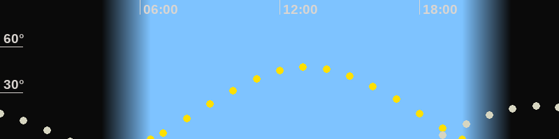 | Höchster Sonnenstand (Kulmination) | 13:09 Uhr (h = 46.9°) |