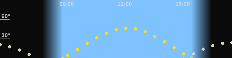 | Sonnenaufgang | 06:29 Uhr im Osten (αAz = 77.7°) |