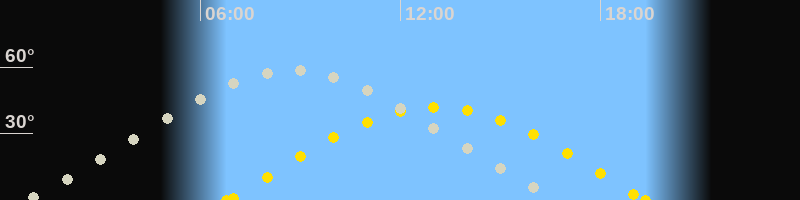 | Sonnenaufgang | 06:47 Uhr im Osten (αAz = 84.9°) |
