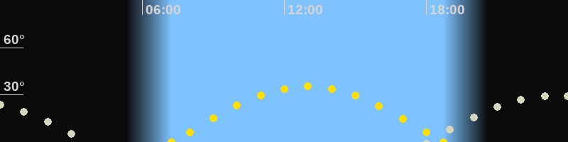 | Sonnenaufgang | 07:14 Uhr im Osten (αAz = 95.3°) |